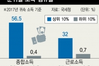 [1월1주] 종합소득의 상하간 격차가 근로소득의 격차보다 더 큰 것으로 나타났습니다. 상위 10%의 종합소득은 113조원으로 전체 종합소득의 56.5%입니다. 상위 10%의 1인당 평균 종합소득은 1억7700만원, 하위 10%의 종합소득은 640만원으로 146배에 이릅니다. 이는 근로소득 상위 10%가 전체에서 차지하는 비중이 3분의 1인 것과 비교해 훨씬 큰 격차입니다. 자영업자의 사업소득이나 이자·배당·임대수입 등 자산소득 일부가 포함된 종합소득이 임금근로자의 근로소득보다 훨씬 더 상위계층에 집중돼 있다는 뜻이죠. 청년이 1년 일찍 직장을 잡으면 결혼 시기가 약 3개월...
