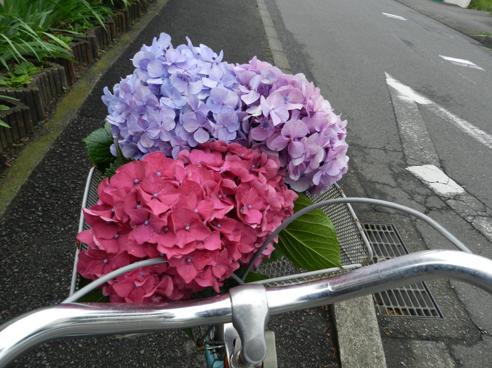 자전거 바구니 가득하게 수국 꽃다발을 싣고 달렸다.