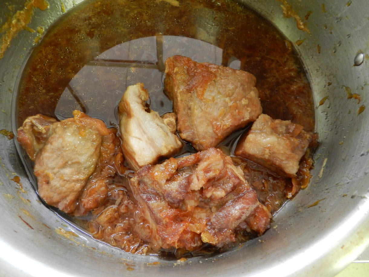 점심은 간장, 요리술, 마멀레이드로 졸인 돼지고기.