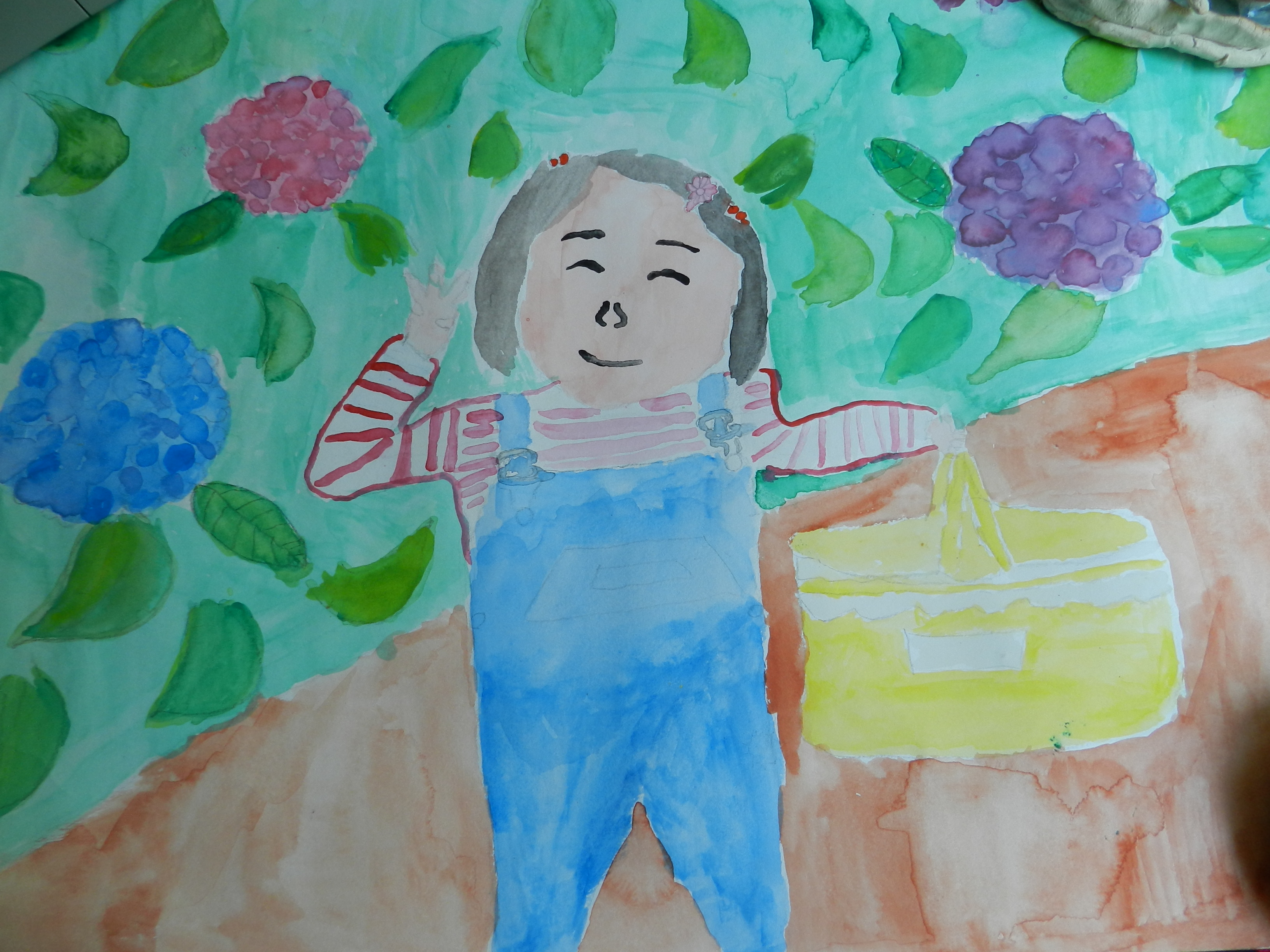 아이는 수국과 함께 찍은 생일 사진을 찾아서 들고 갔다.
