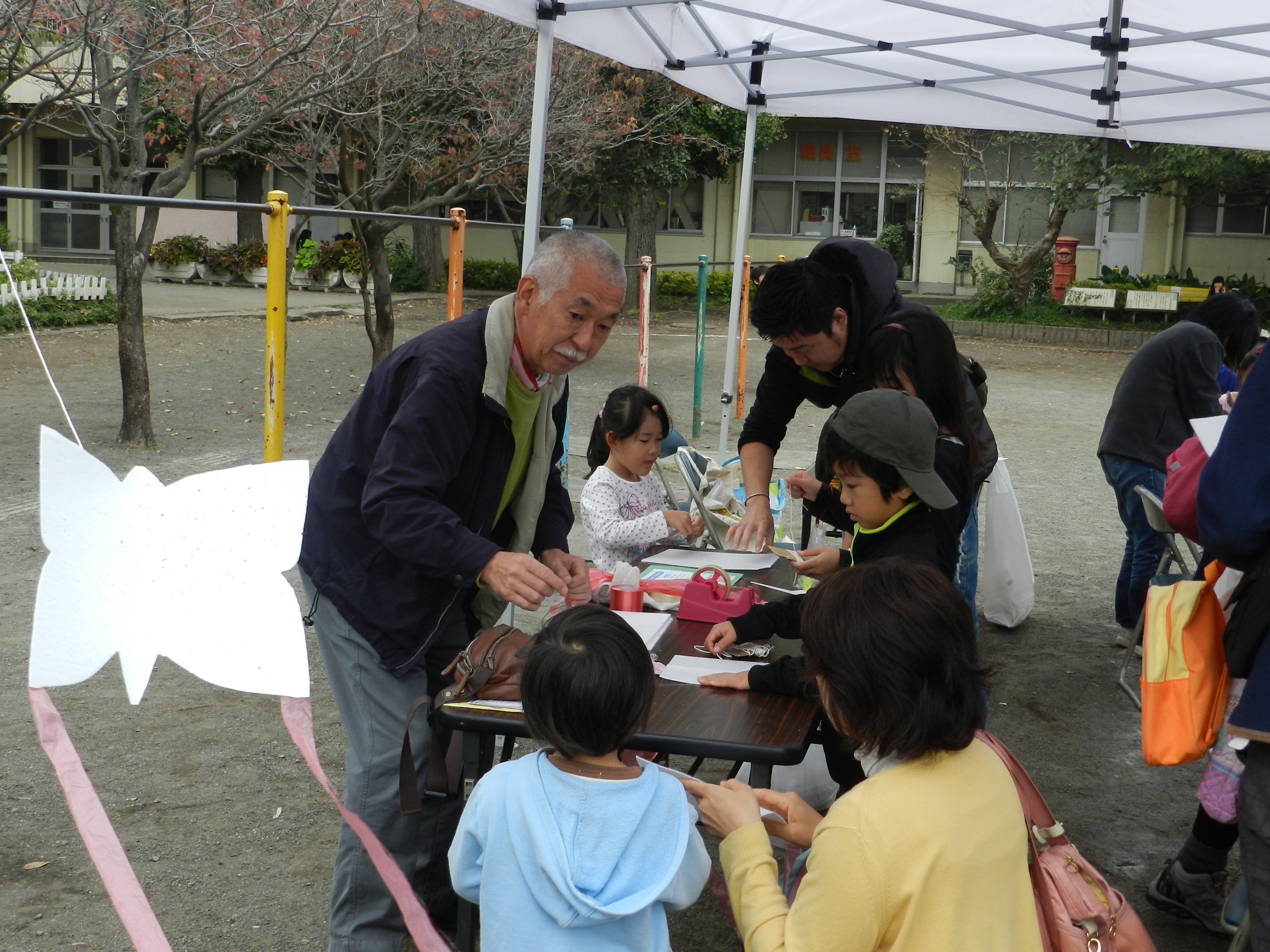 <초등학교의 바자회 무료 코너. 사진 왼쪽에 나비모양의 연이 있다.