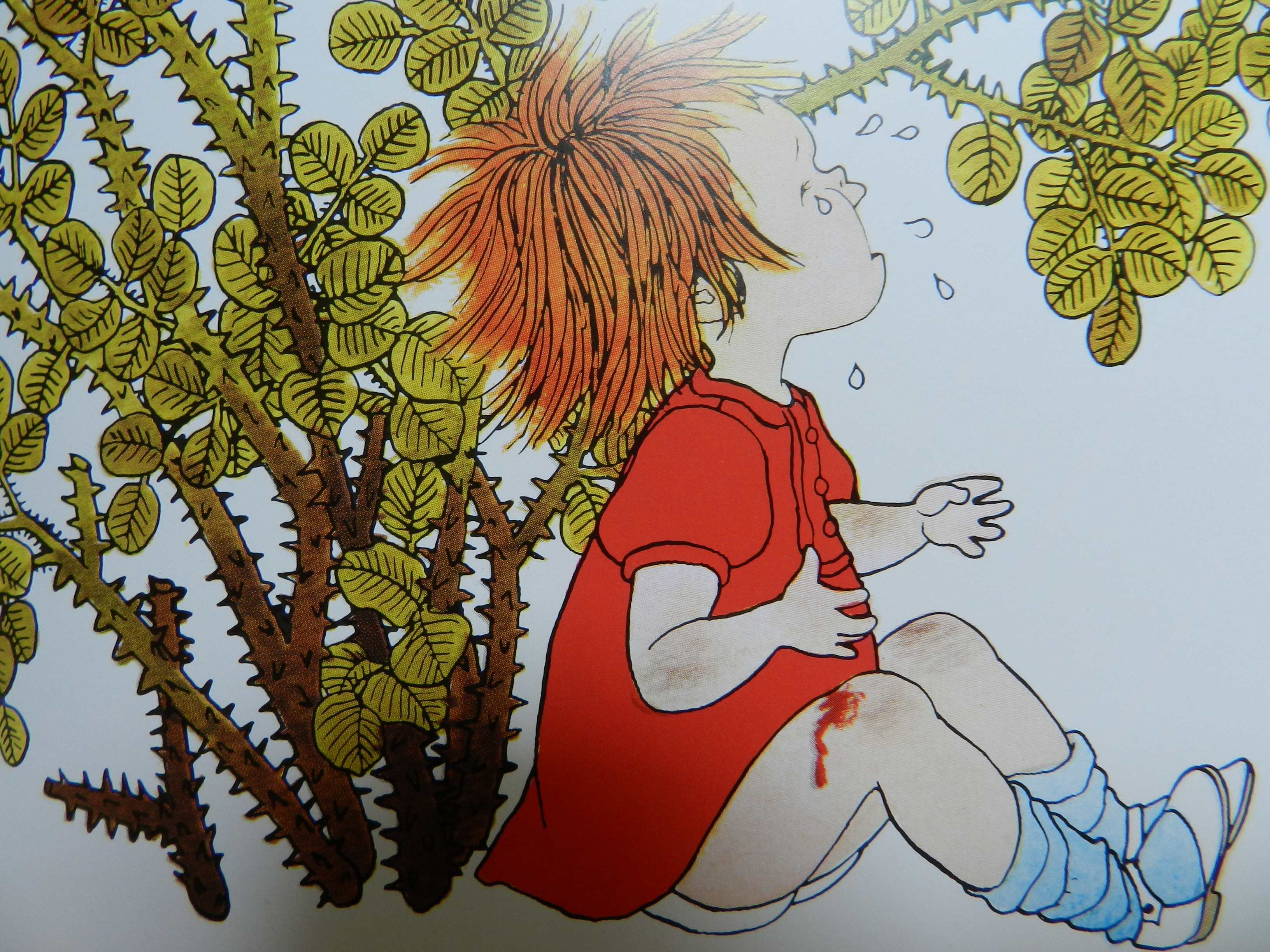 무척 실감나게 그린 그림책이다. 넘어져 우는 로타를 보며 긴장한 표정이던 아이가 얼른 뛰어가더니