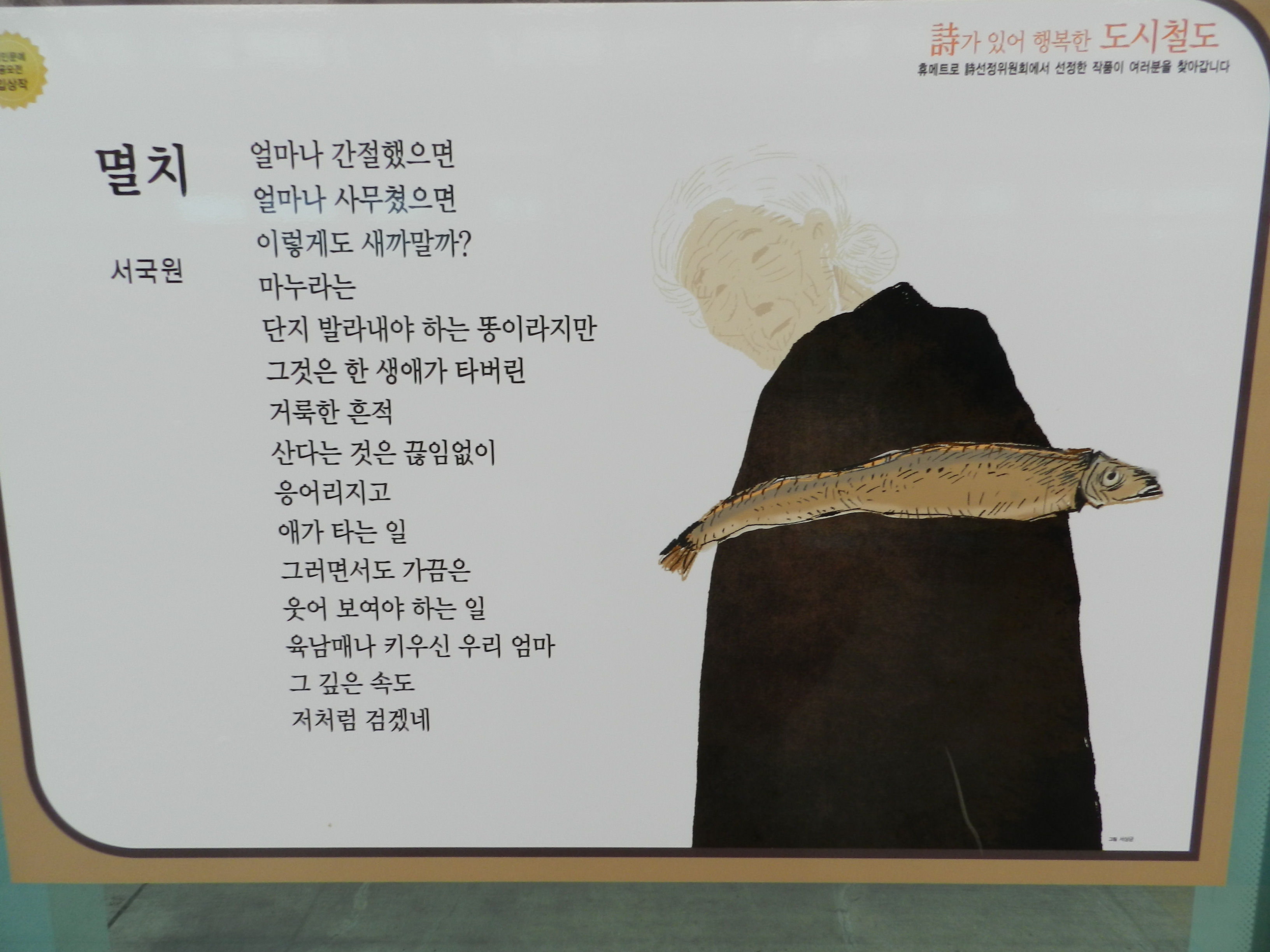 지하철역 안전창 벽 곳곳에 시가 적힌 그림이 있다. '시가 있어 행복한 도시철도'란다.