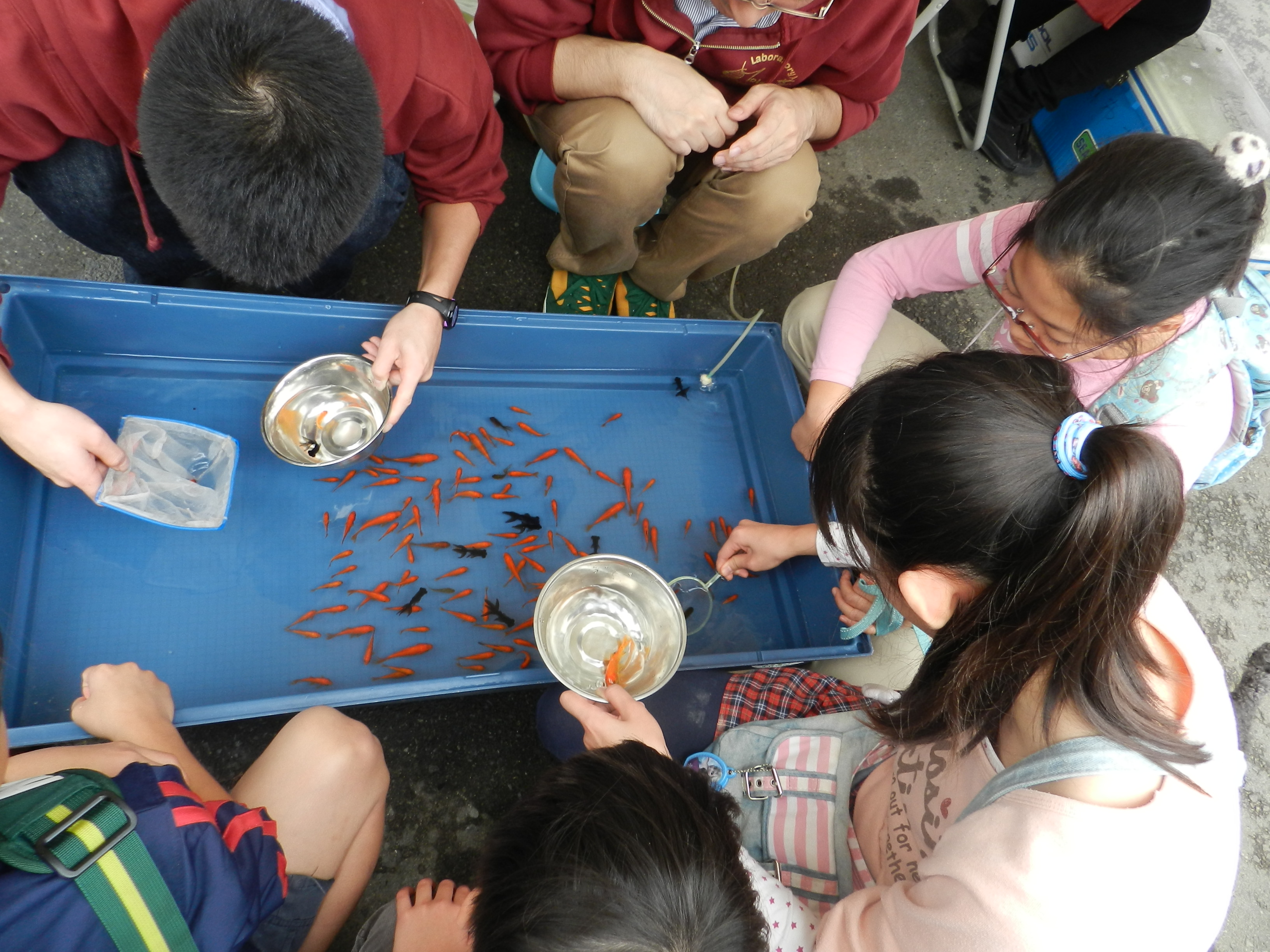 어린이를 대상으로 한 말타기 이벤트나 금붕어 낚시(?) 코너 등을