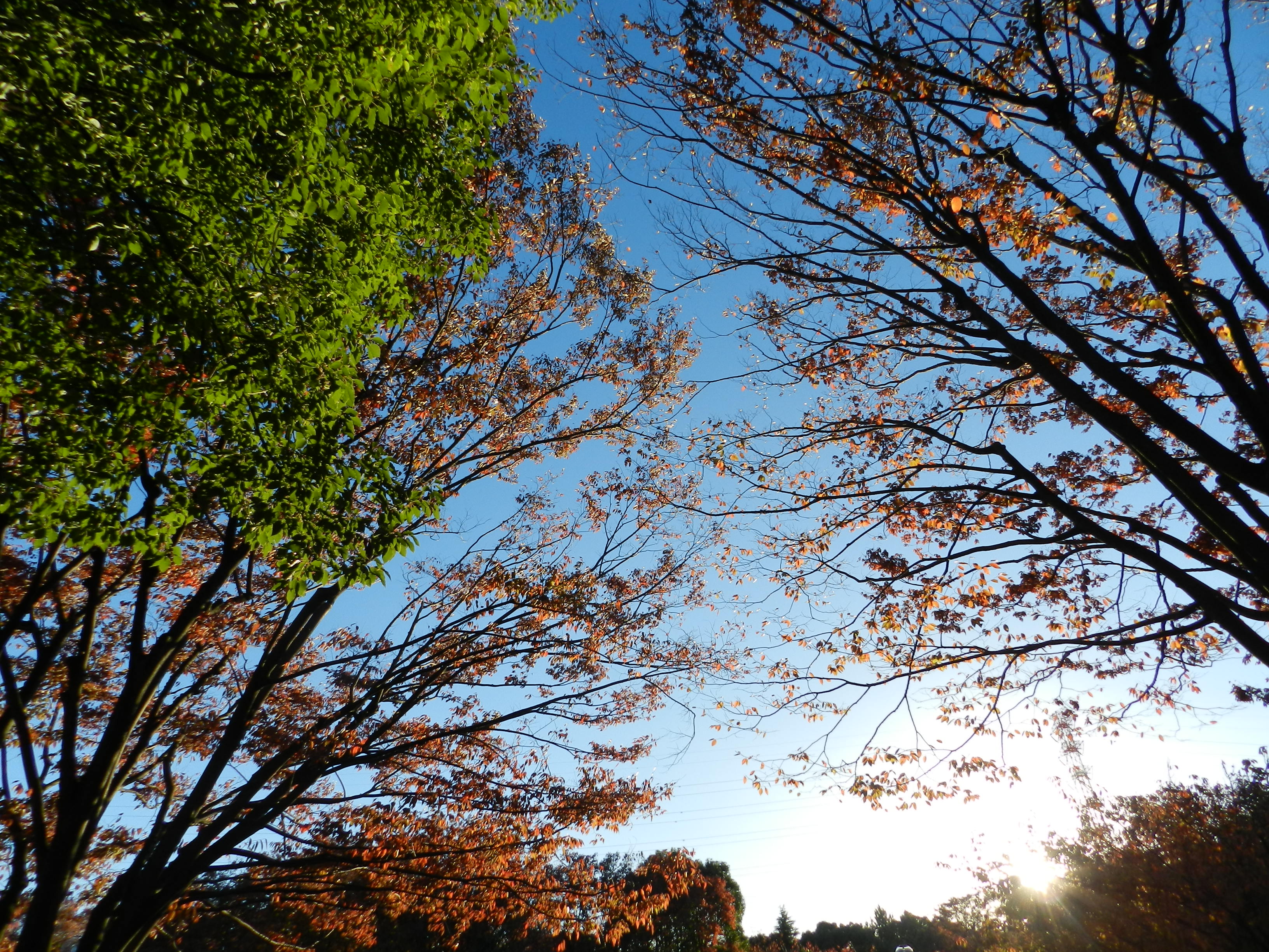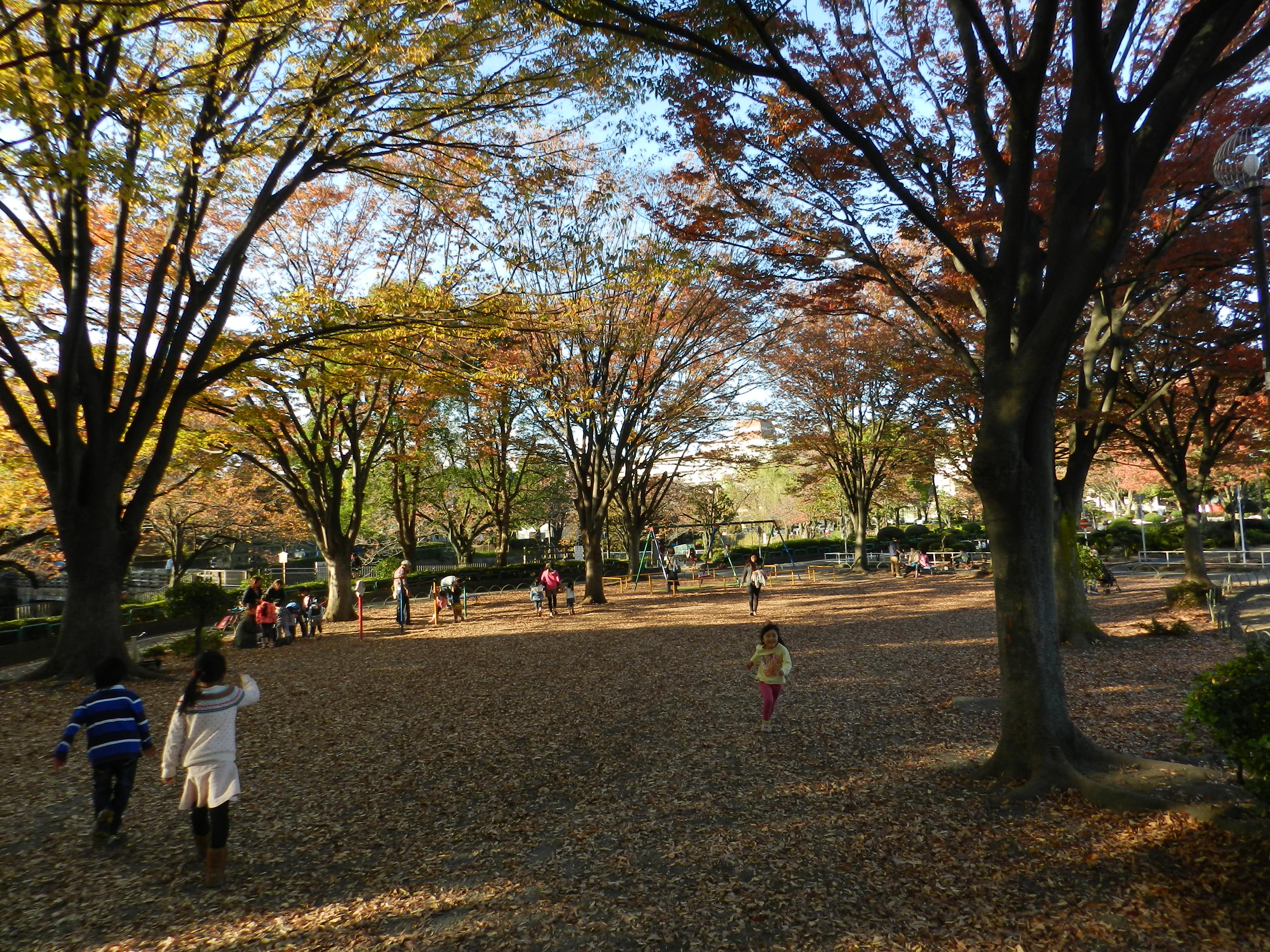아이들이 뛰어노는 모습을 멀리서 지켜보며 바라보는 늦가을 풍경은