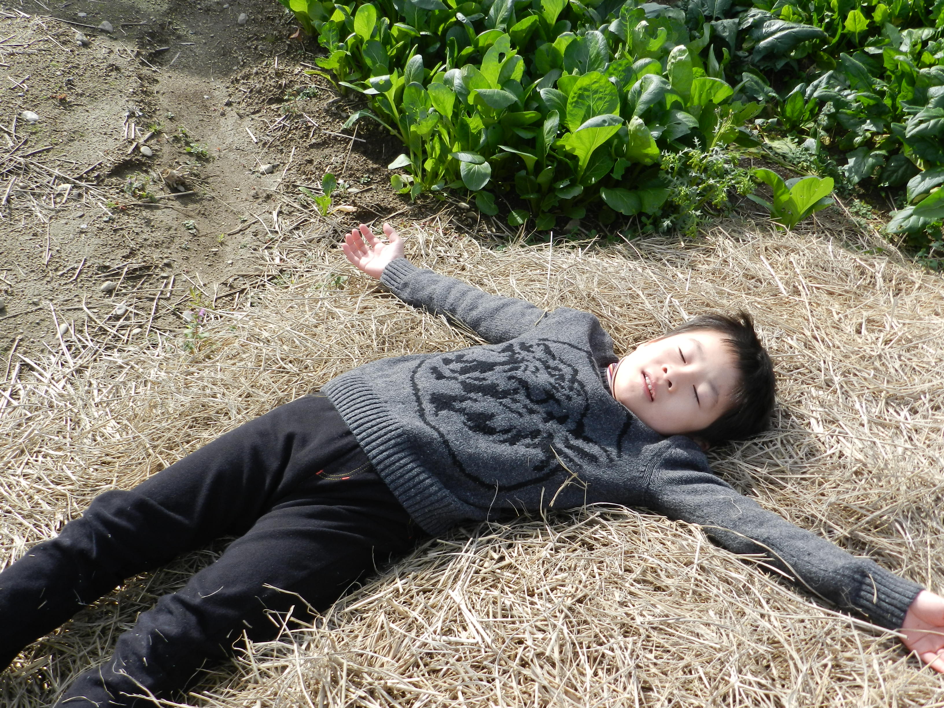 따뜻한 짚더미 위에 드러누워