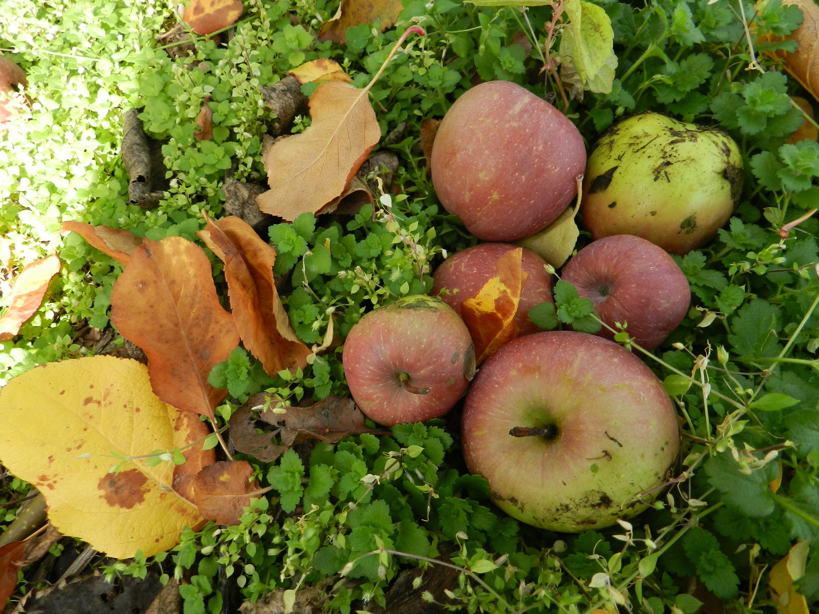 큰 사과로 영글기 전에 떨어진 작은 사과들이