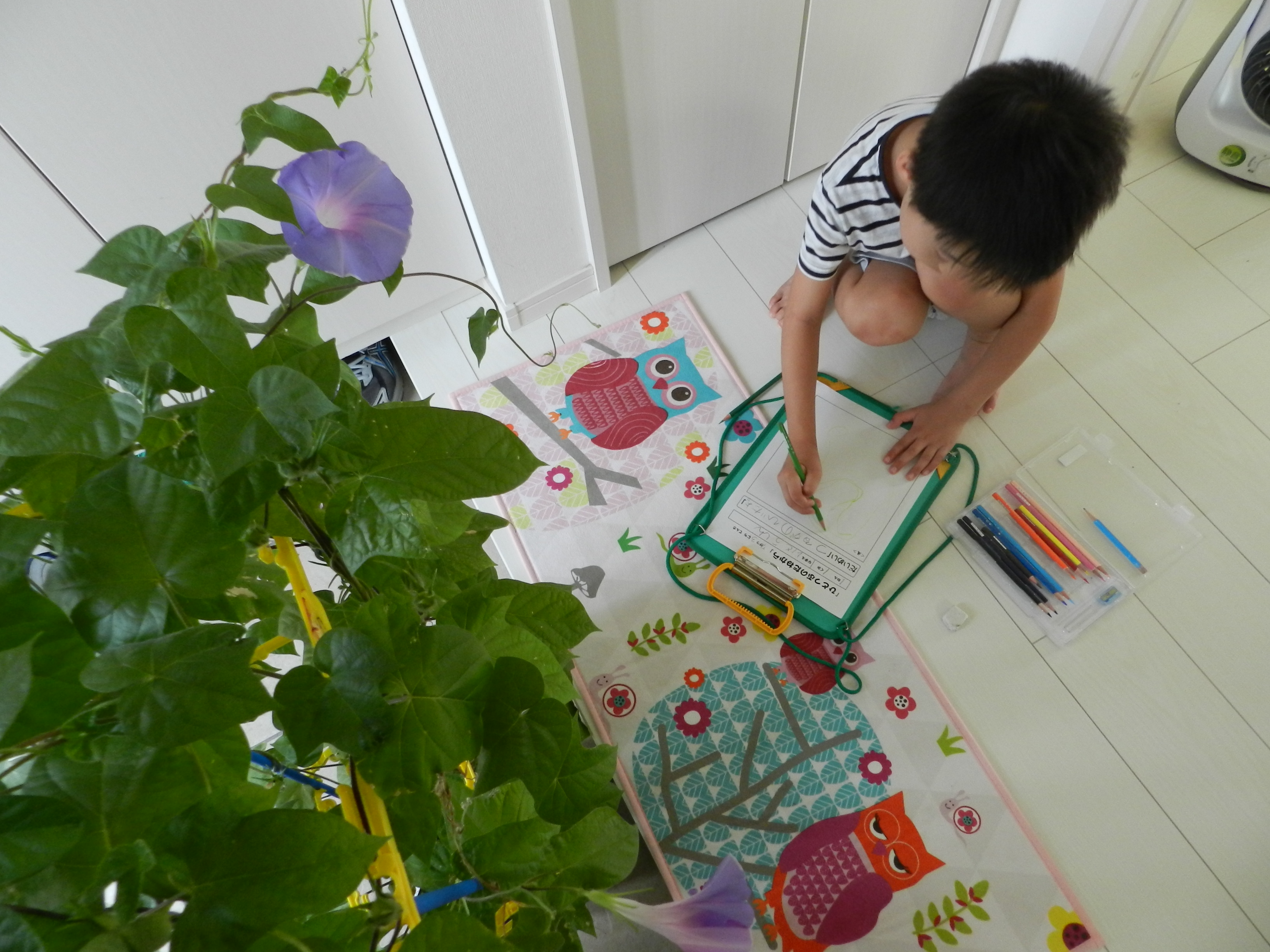 나팔꽃 화분을 집으로 가져가 계속 기른다.