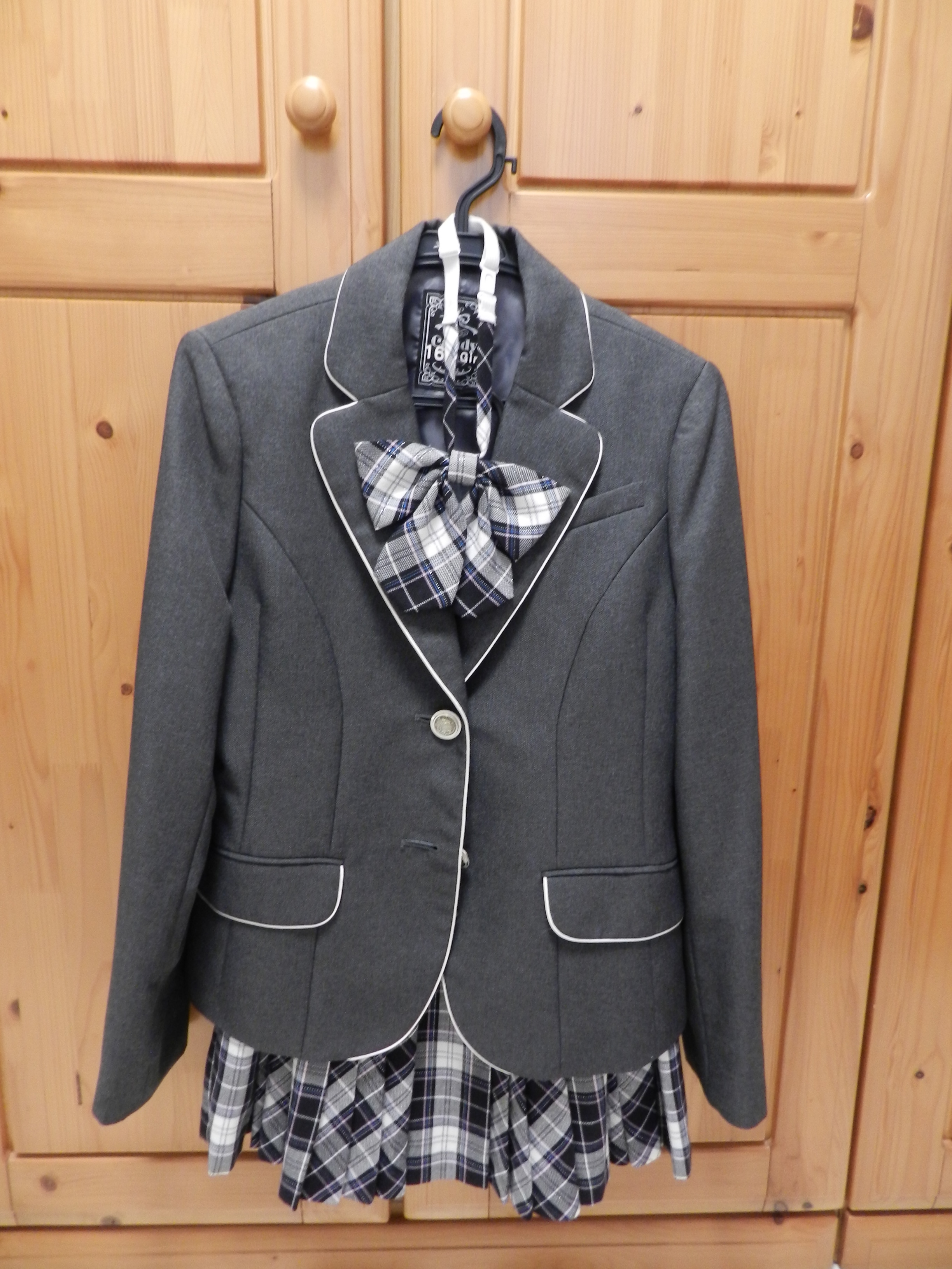 치수를 맞추느라 여러 사이즈의 교복을 입어보며