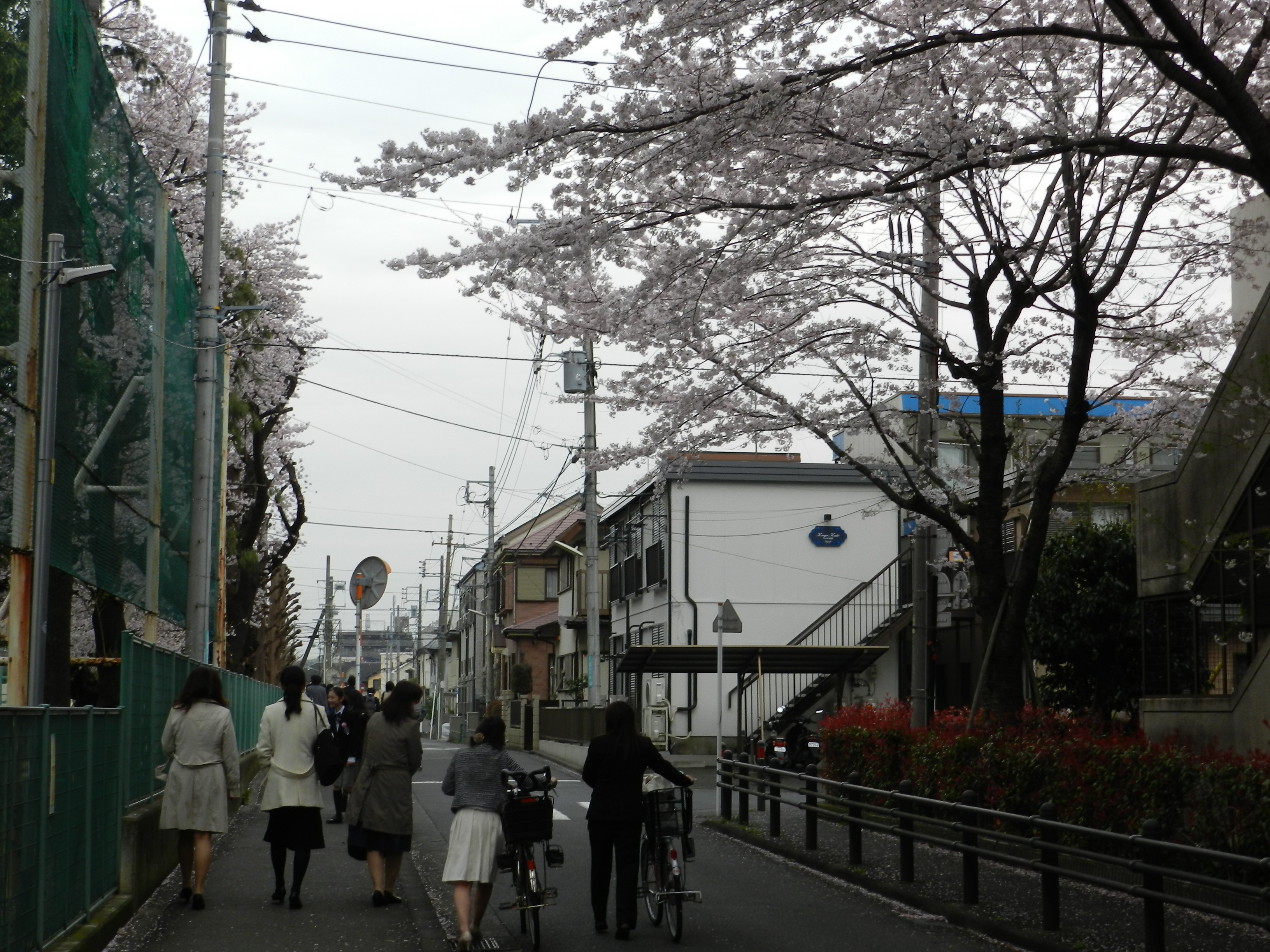 학교 입학식을 마치고 집으로 돌아가는 일본 엄마들의 뒷모습.