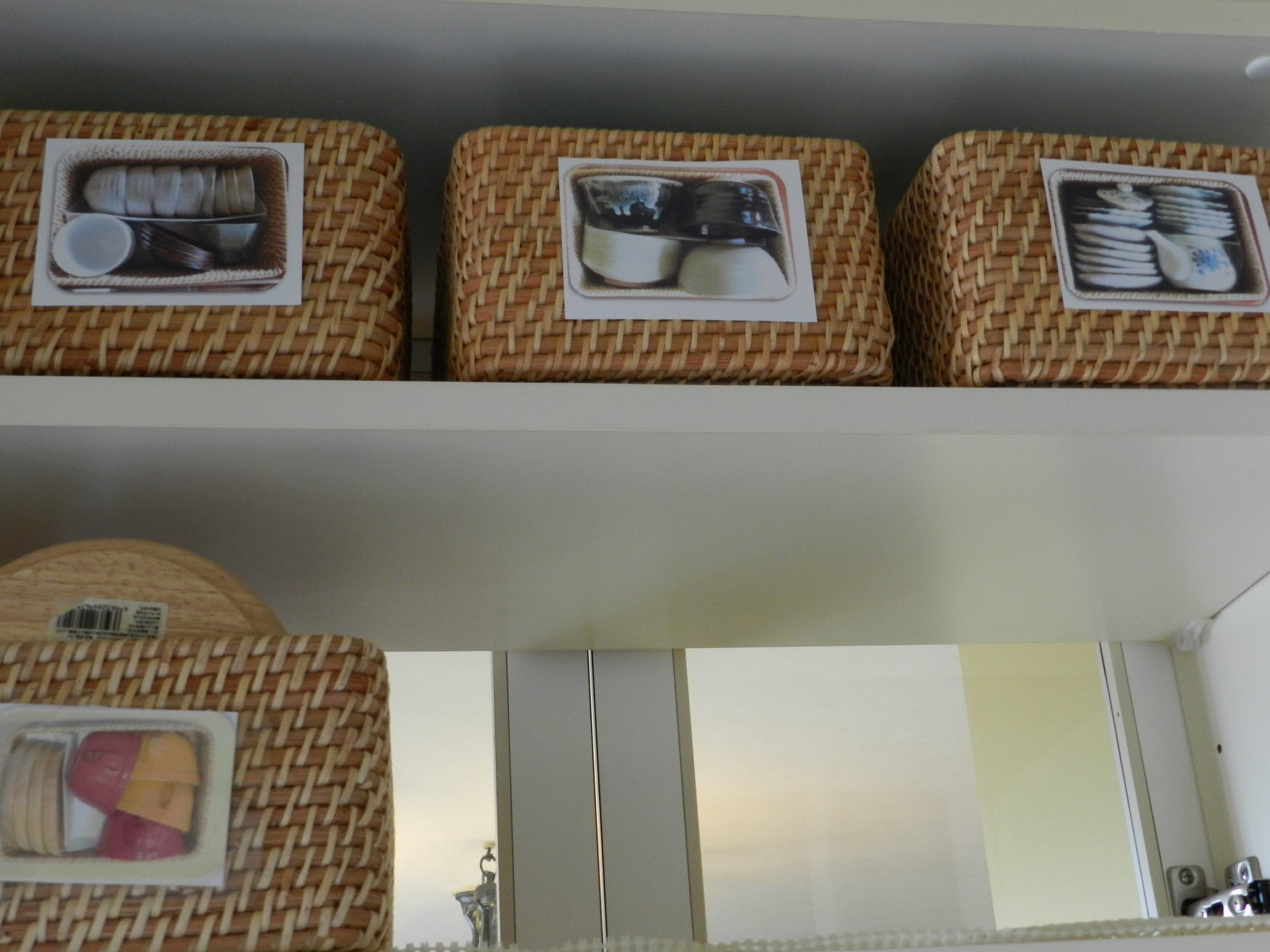 각 바구니에 수납된 물건 사진을 찍어 붙이는 방법.